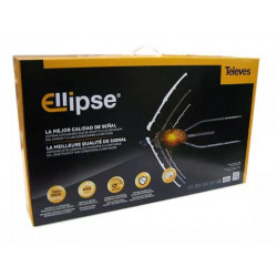 La antena TV Ellipse es muy ligera y compacta lo que facilita su instalación en lugares complicados y ofrece menor resistencia al viento. Tiene un alto margen dinámico que le permite recibir una señal de calidad en un amplio rango de situaciones. levantando señales muy débiles y evitando la saturación con elevados niveles de recepción. C/N óptima, respetando al máximo la calidad de la señal gracias a una figura de ruido muy baja. Antena inteligente que regula automáticamente la ganancia al nivel adecuado, con dipolo especial en doble "U", formato abierto/cerrado que le proporciona una planicidad óptima en su respuesta en frecuencia. Su caja de conexiones está totalmente blindada que protege el sistema BOSS del ruido impulsivo. Conectada a tierra para una protección total contra las descargas eléctricas.