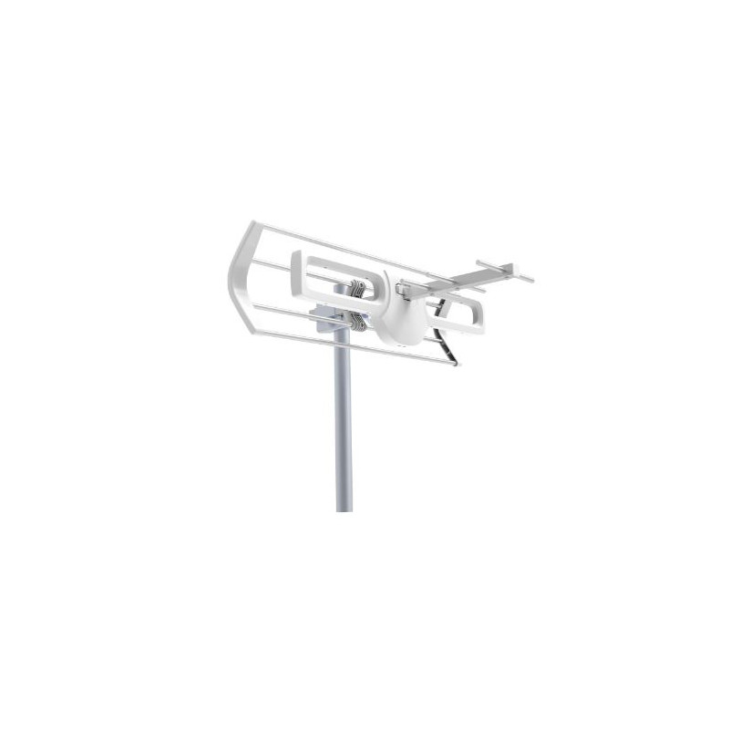 Antena mini digital Full HD UHF, ideal para recepción de Televisión Digital Terrestre (TDT), tecnología LTE 5G, plegable de aluminio y plástico ABS con protección UV, montaje fácil sin necesidad de herramientas, sistema click-clack, abrazadera reforzada.
