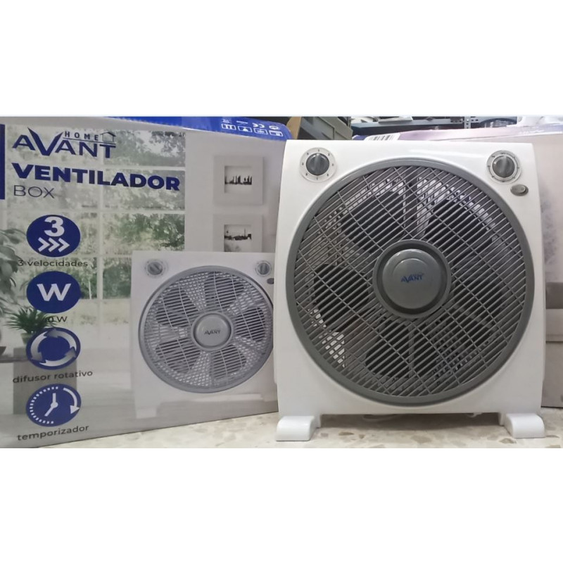 Ventilador hogar tipo box, con difusor que permite seleccionar salida de aire en modo rotativo ó en modo fijo. Su tamaño compacto lo hace práctico y versátil para colocar en mesas, estanterías o suelo. Con temporizador integrado que permite programar su apagado, que proporciona comodidad y ahorro de energía. Tres velocidades. Equilibrio perfecto entre tamaño y potencia.