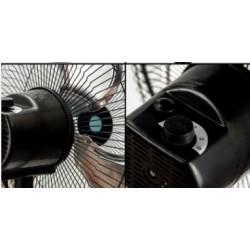 Ventilador hogar de pie con base redonda de gran estabilidad para espacios amplios, movimiento oscilante y rejilla alta protección de diámetro de 40cm. Tres velocidades. Potencia 60W. Encienda el ventilador y disfrute de aire fresco al momento.